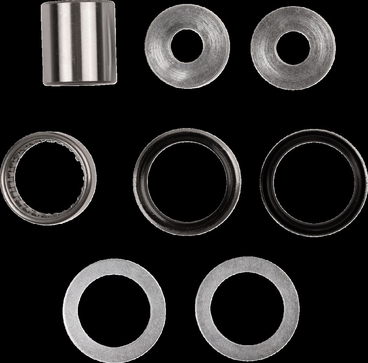 De kit bevat de schoklager, pakkingen, spacers en pinnen (indien nodig) om de bovenste schokverbinding te herbouwen