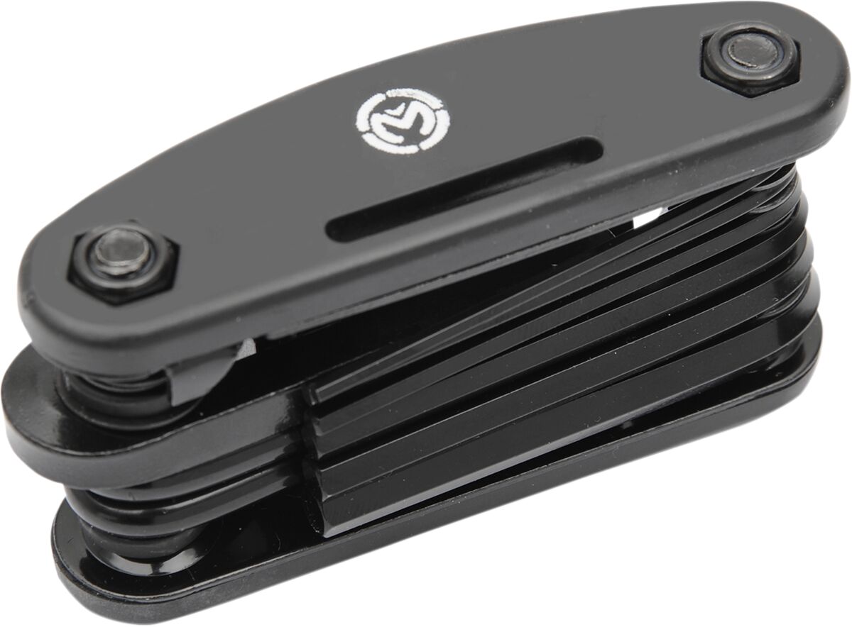 Vouwgereedschap bevat 2 mm, 2,5 mm, 3 mm, 4 mm, 5 mm, 6 mm inbussleutels; 8 mm, 10 mm en 12 mm dopstukken; 8 mm, 10 mm en 15 mm open-end steeksleutels, Phillips schroevendraaier, 1/4" aandrijffitting en platte schroevendraaier
