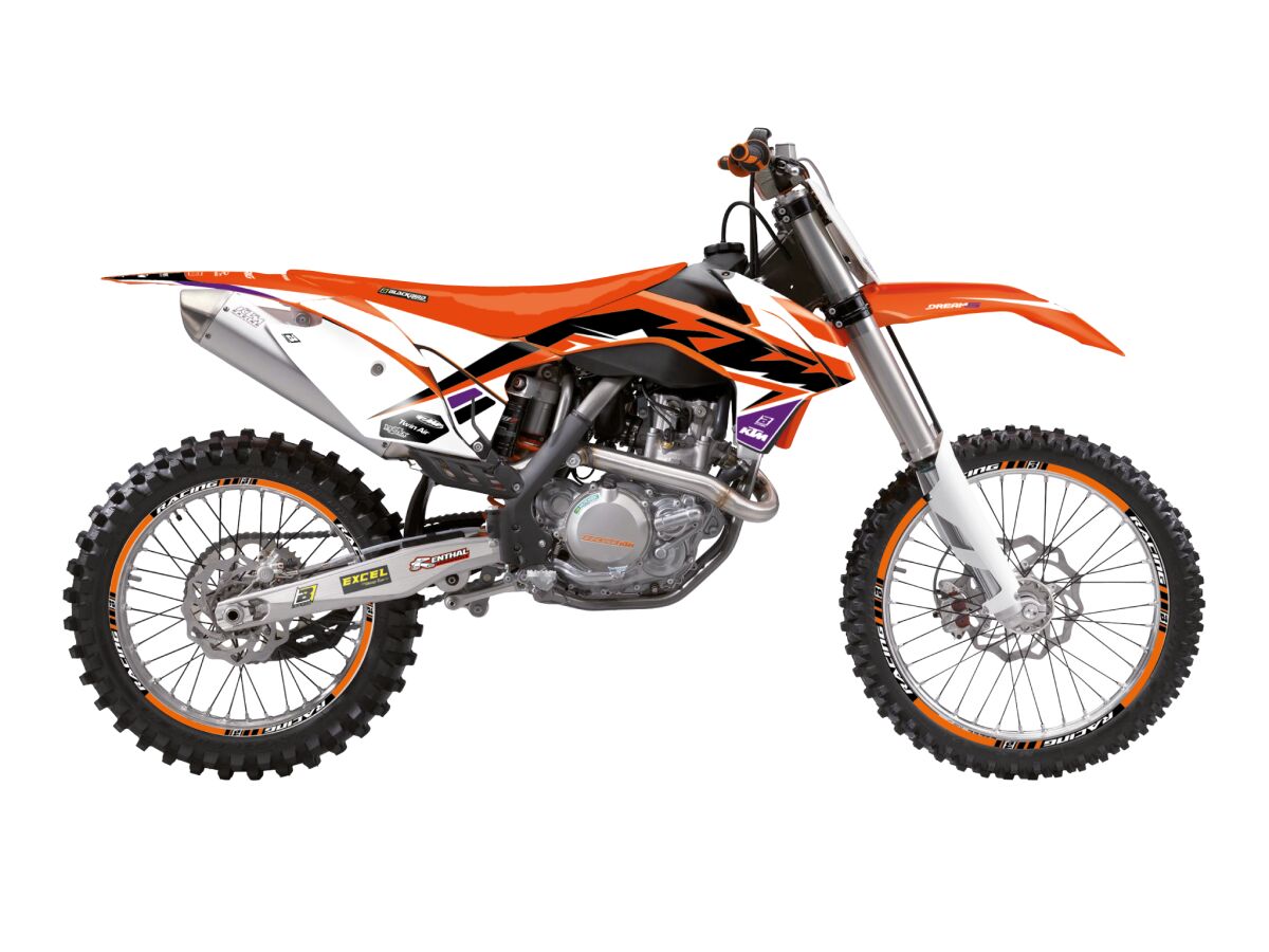 De stickerkit bevat: tankpaar, linker radiatorafdekking, voorvleugel en achtervleugel
