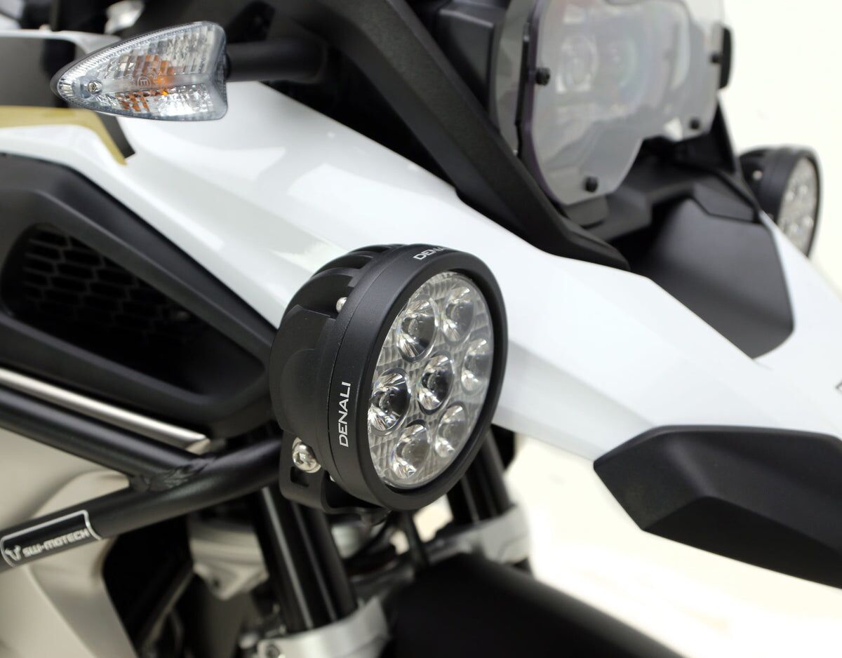 Deze specifiek voor voertuigen gemaakte rijlichtbeugel stelt je in staat om elk DENALI-rijlicht op de optimale locatie op je motorfiets te monteren.