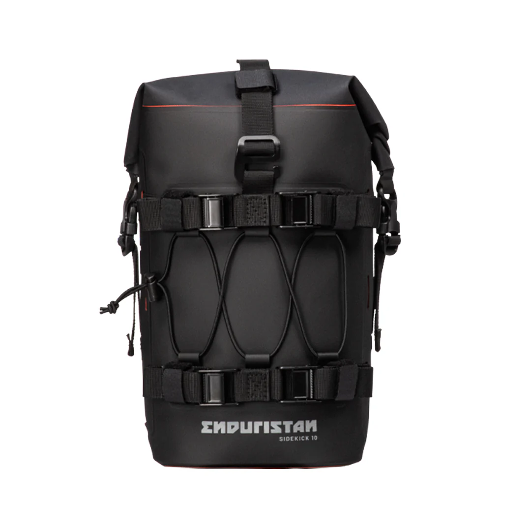 De Sidekick 10 is een compacte, waterdichte uitbreidingstas, ontworpen om je bagagesetup uit te breiden precies daar waar je extra ruimte nodig hebt. Je kunt hem monteren op het frame van de motor of op bagagerekken met sleuven – wij leveren alle benodigde riemen mee. Wanneer hij direct op compatibele Enduristan-producten wordt gemonteerd via de gepatenteerde Enduristan Standard Interface, voegt hij 10 liter gemakkelijk toegankelijke opbergruimte toe zonder concessies te doen aan stabiliteit of waterdichtheid.