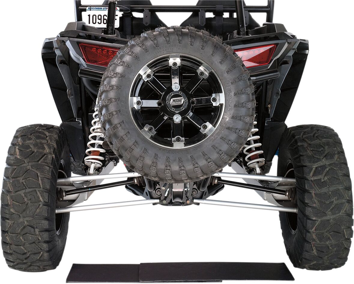 Het unieke off-road ontwerp met gebogen onderste inzetstuk met volledig verstelbare hoogte om de ultieme gebruiksvriendelijkheid te bieden bij het vervoeren van een reservewiel op een UTV, vrachtwagen of auto