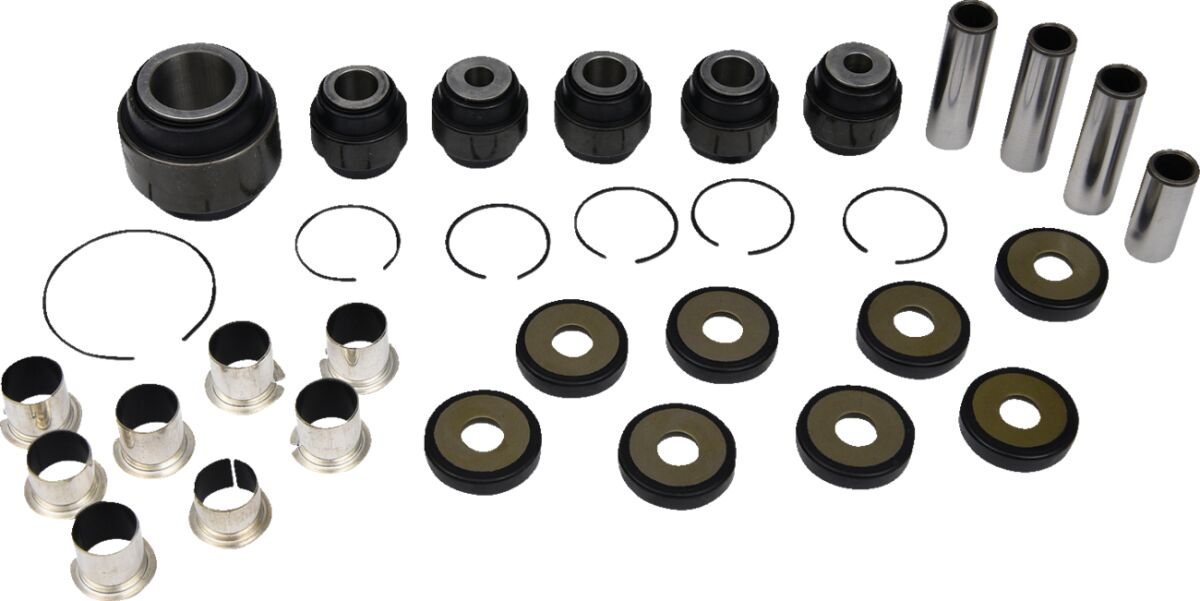 Kosteneffectieve kit die alle lagers, lagerkappen, pakkingen, assen en diverse componenten bevat om de achterste boven- en onderaarmen en knuppel te repareren
