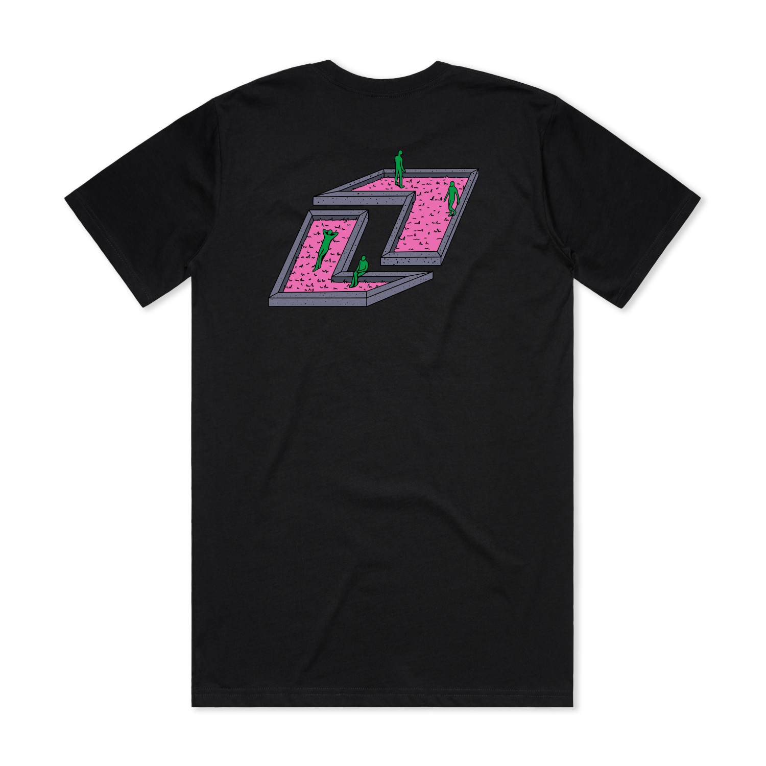 Stel je voor dat je in een groen park speelt, helemaal in het roze, of in een roze park helemaal in het groen – dat is de creativiteit achter "The Art Park Tee"