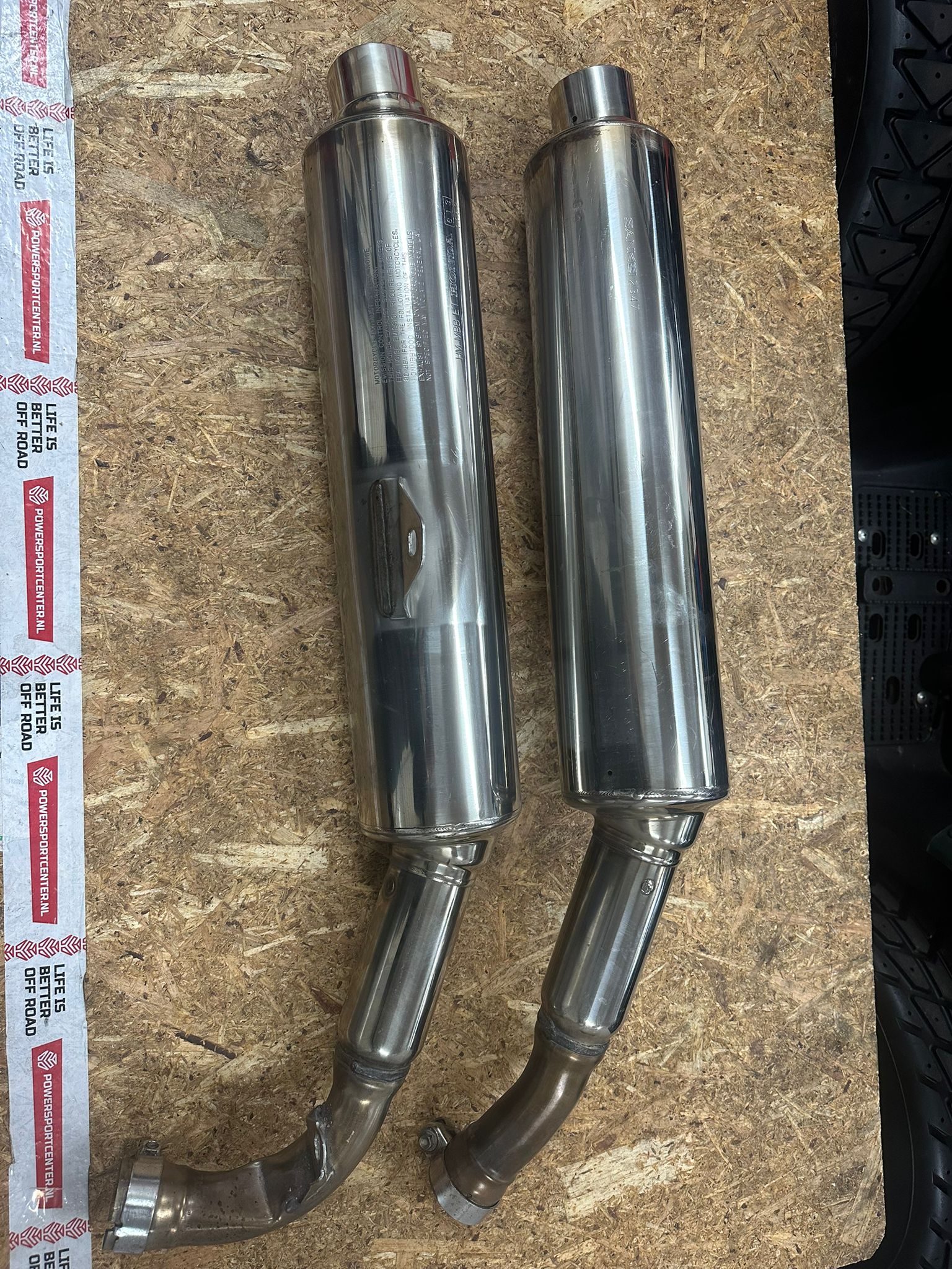 Originele Honda uitlaatdempers voor de VTR1000F Firestorm (1997–2006). Deze dempers zijn gebruikt, maar behouden de authentieke uitstraling en het karakteristieke V-twin geluid zoals Honda dat heeft ontworpen.