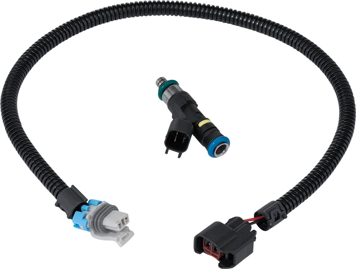 The stock injectors are epoxied to the wire harness, so we include our own replacement wire harness