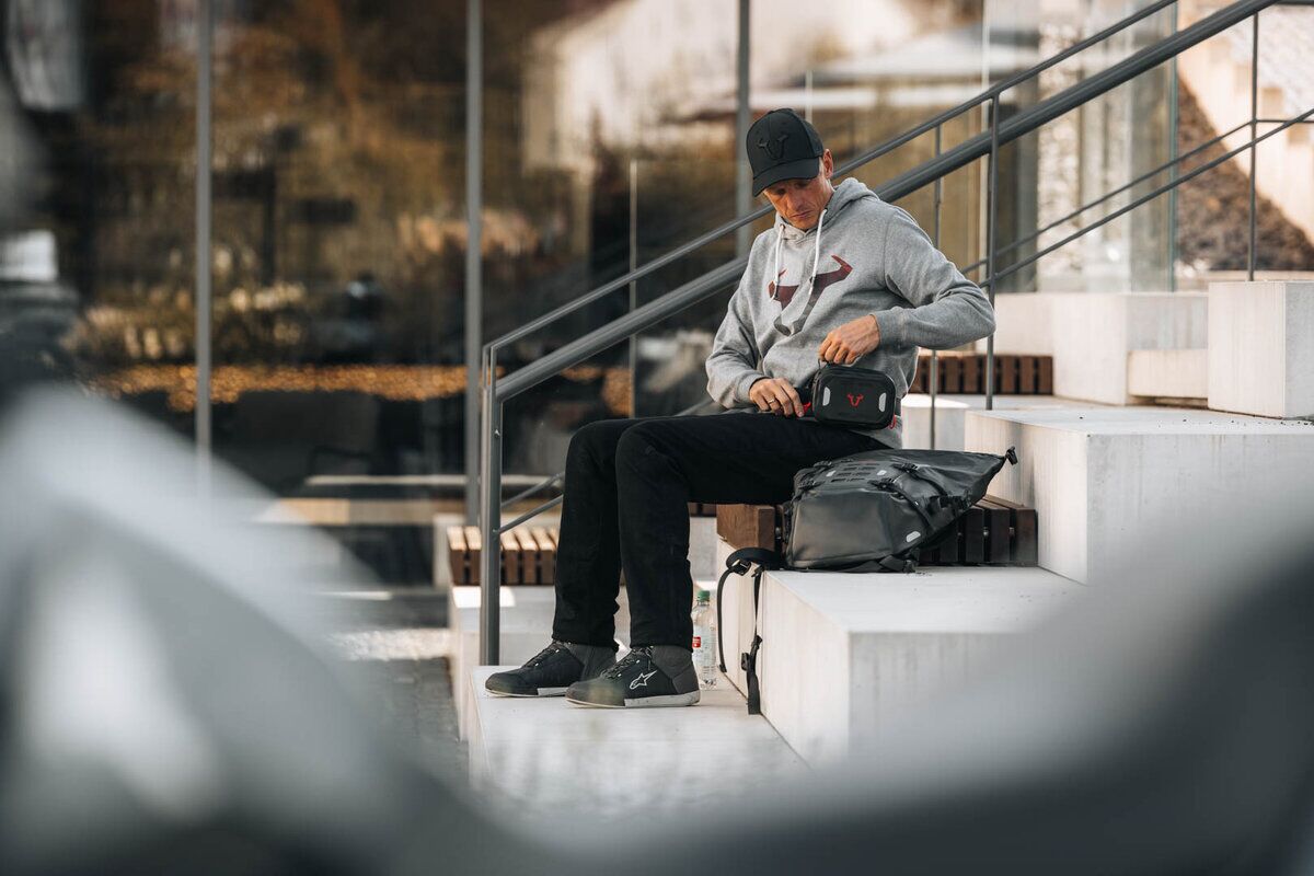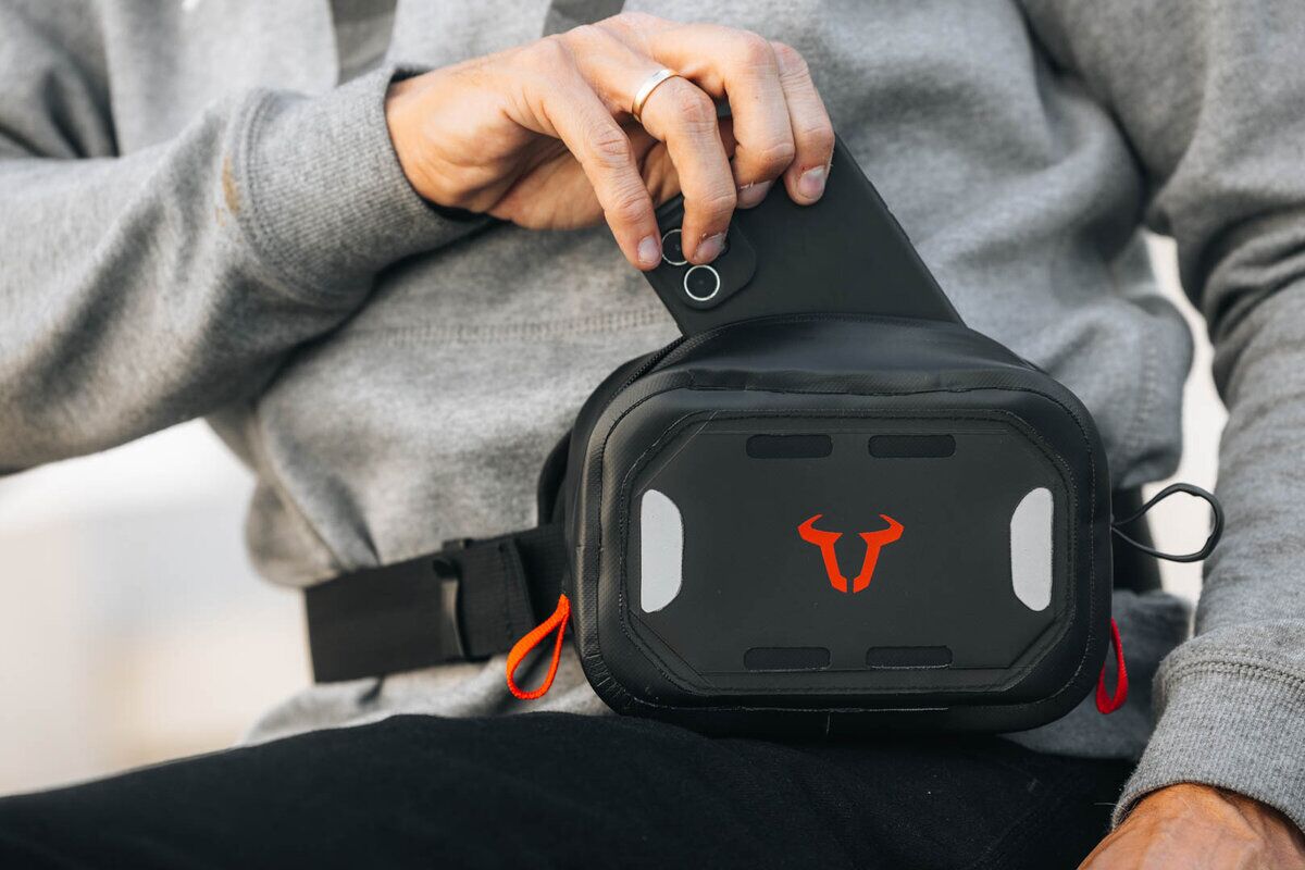 The bum bag is celebrating its comeback – now also with us! As a new edition in the completely waterproof version, this stylish bum bag is the right accessory for every motorcycle adventure and for all riders who like to have their items such as smart phones, wallets, and documents available in no time thanks to clever placement.