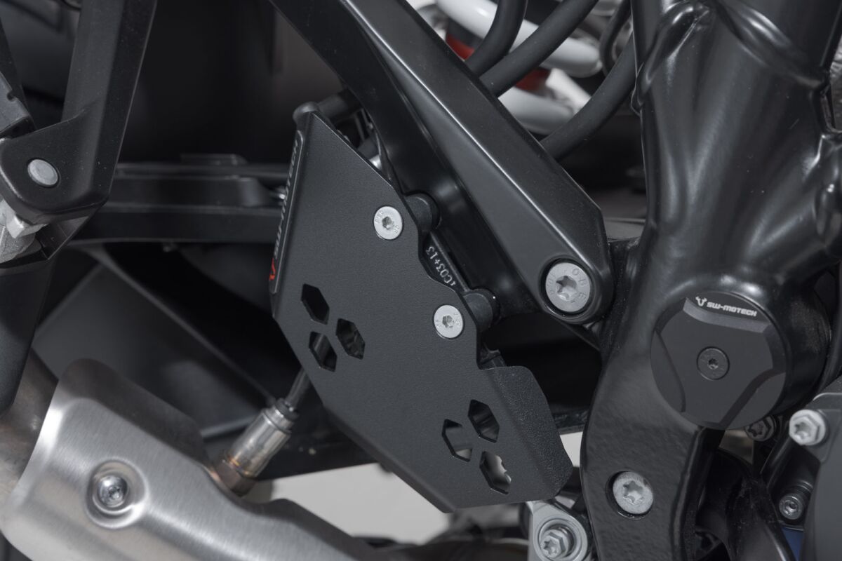 The folded and laser-cut aluminum protector protects the foot brake cylinder - even against unwanted boot contact.