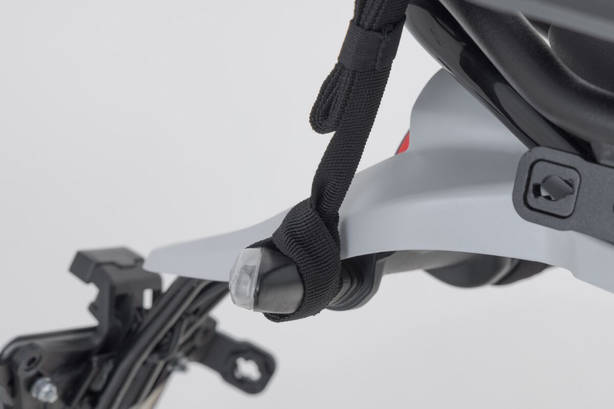 D-rings allow the bag to be pulled tightly against the motorcycle