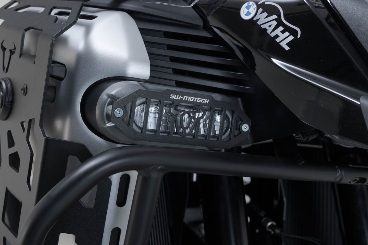 The steel protective grille protects the additional headlights from gravel and foreign objects.
