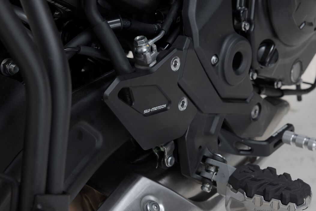 The compact brake reservoir guard protects the original brake reservoir from rock chips and simultaneously prevents unwanted removal of the cover. The protector can be installed on the motorcycle in a few simple steps